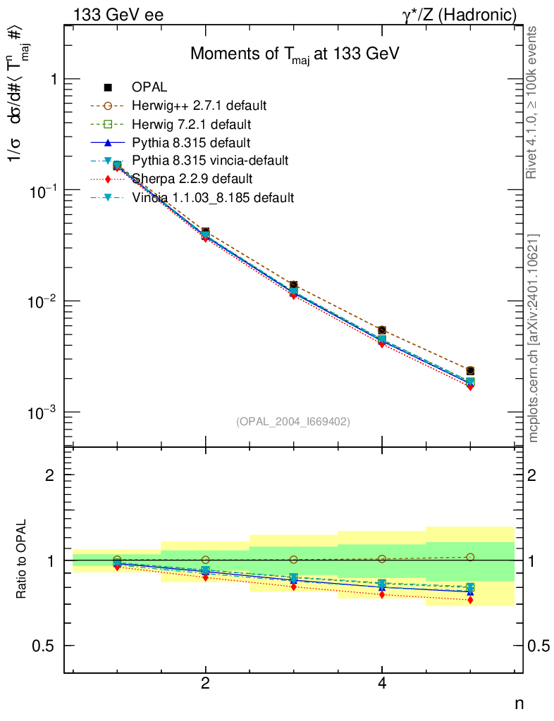 ee : γ*/Z (hadronic) : Event-Shape Moments : Moments of T Major