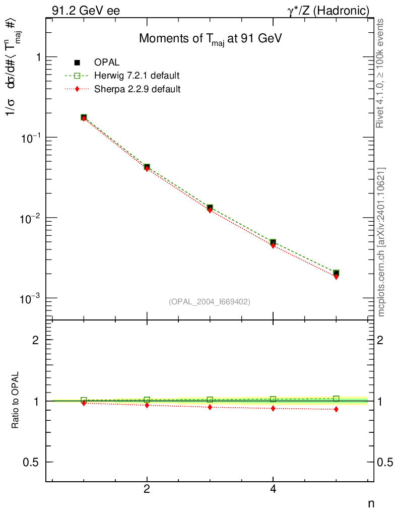 ee : γ*/Z (hadronic) : Event-Shape Moments : Moments of T Major