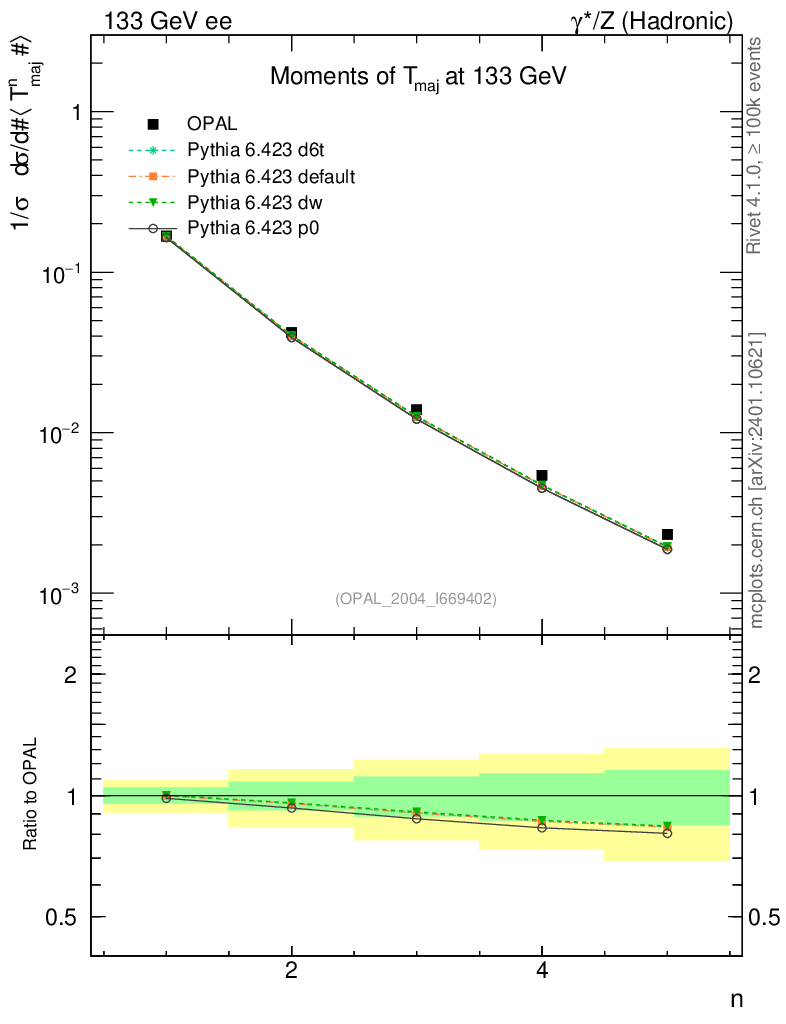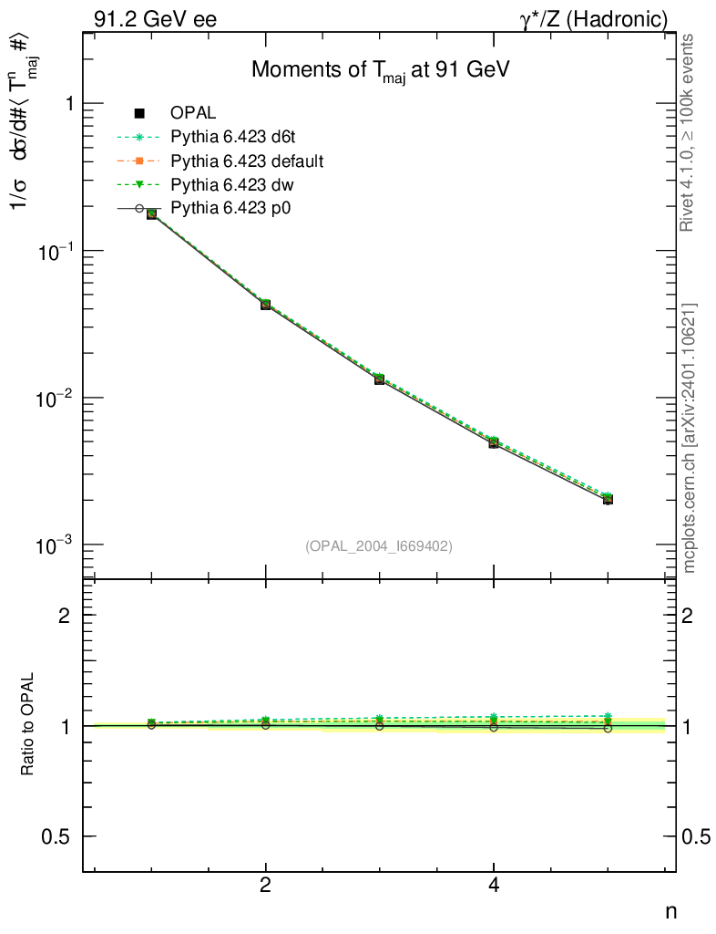ee : γ*/Z (hadronic) : Event-Shape Moments : Moments of T Major
