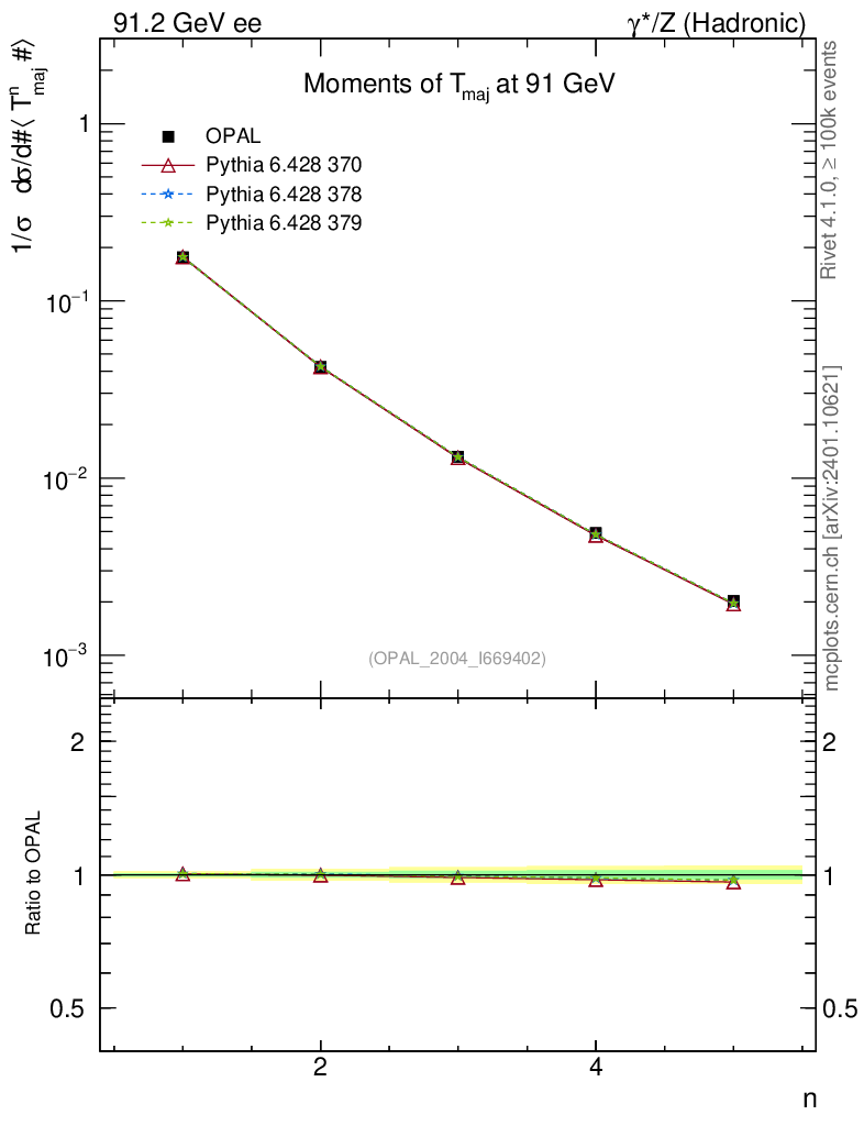 ee : γ*/Z (hadronic) : Event-Shape Moments : Moments of T Major