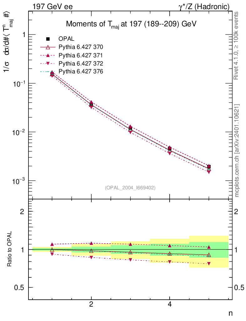 ee : γ*/Z (hadronic) : Event-Shape Moments : Moments of T Major