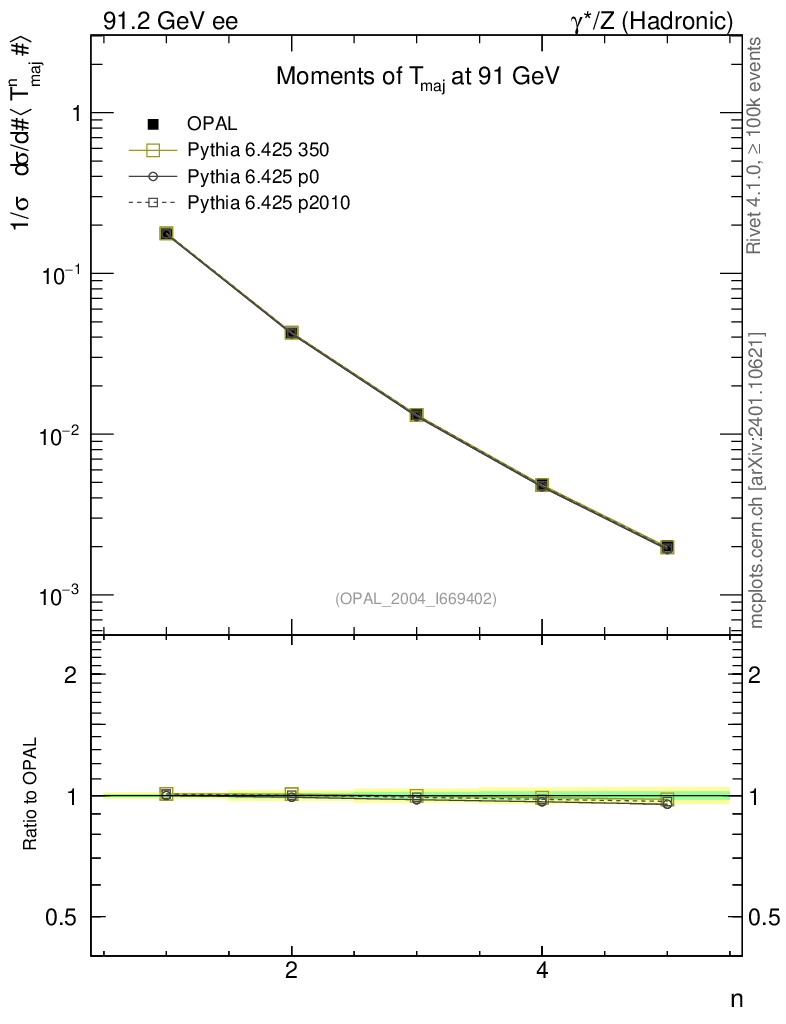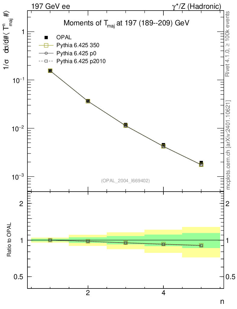ee : γ*/Z (hadronic) : Event-Shape Moments : Moments of T Major
