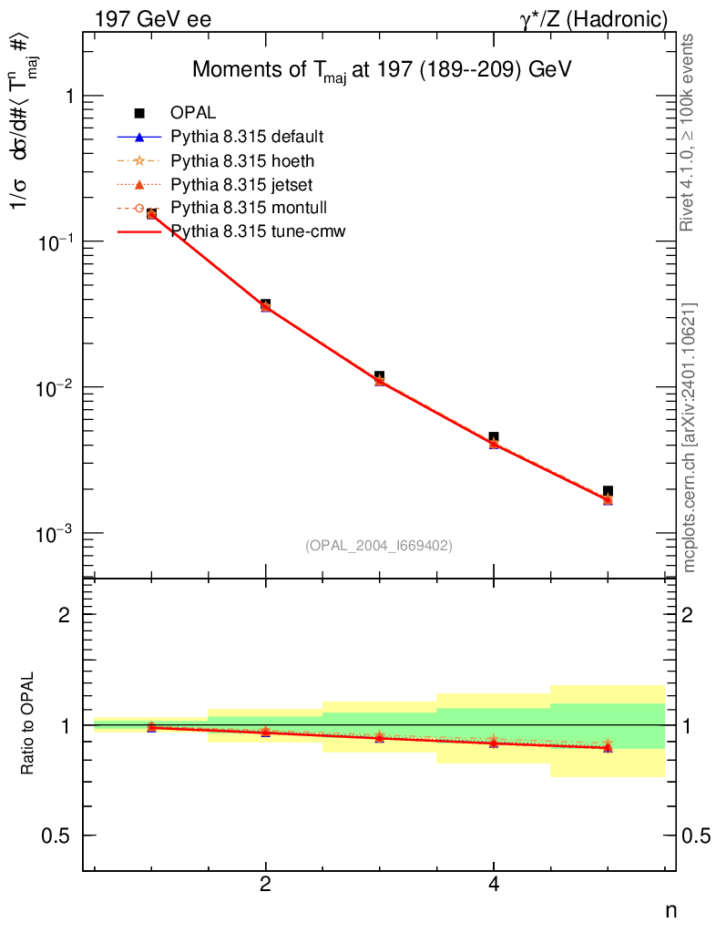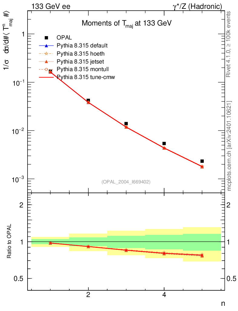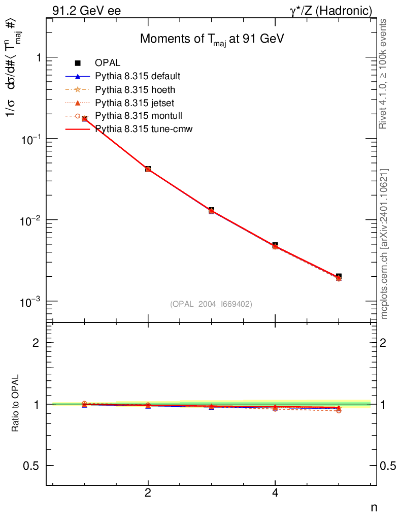 ee : γ*/Z (hadronic) : Event-Shape Moments : Moments of T Major