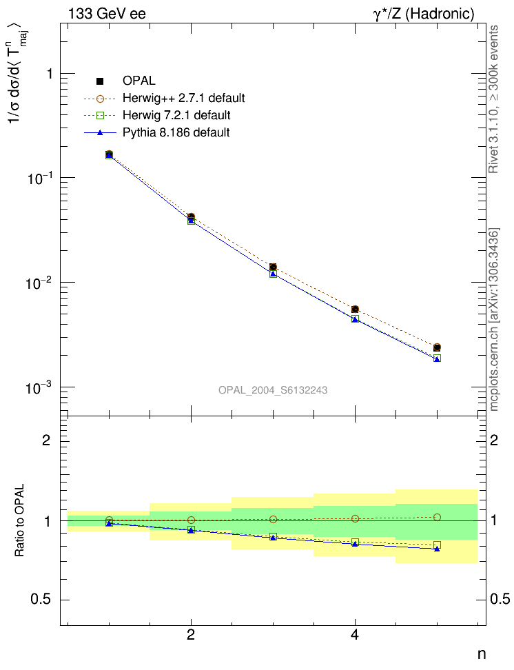 ee : γ*/Z (hadronic) : Event-Shape Moments : Moments of T Major