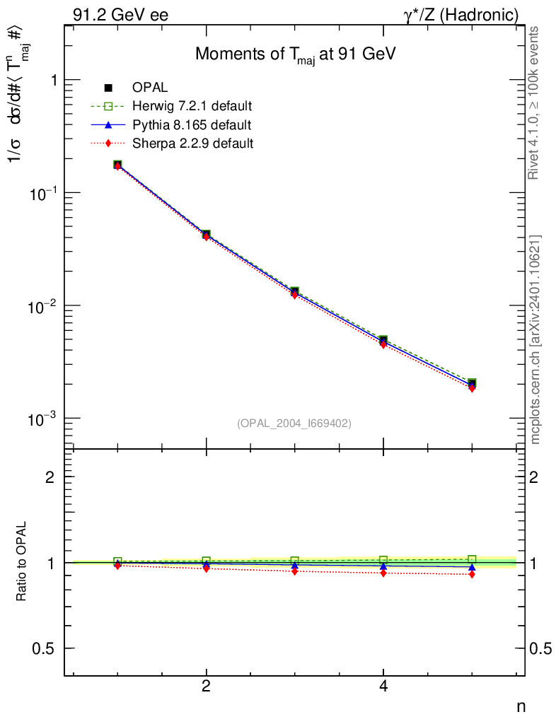 ee : γ*/Z (hadronic) : Event-Shape Moments : Moments of T Major