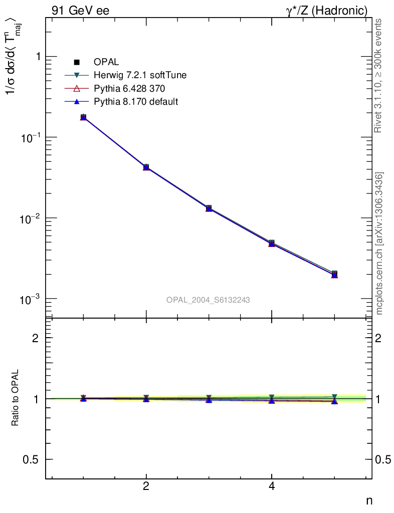ee : γ*/Z (hadronic) : Event-Shape Moments : Moments of T Major