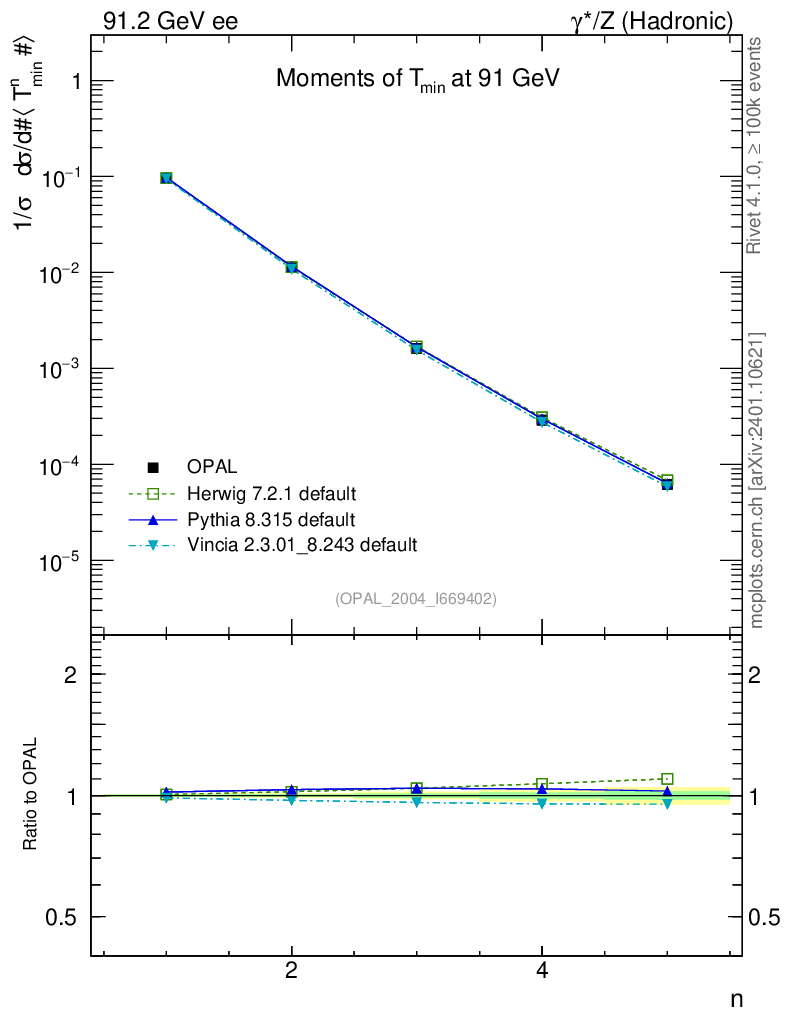ee : γ*/Z (hadronic) : Event-Shape Moments : Moments of T Minor
