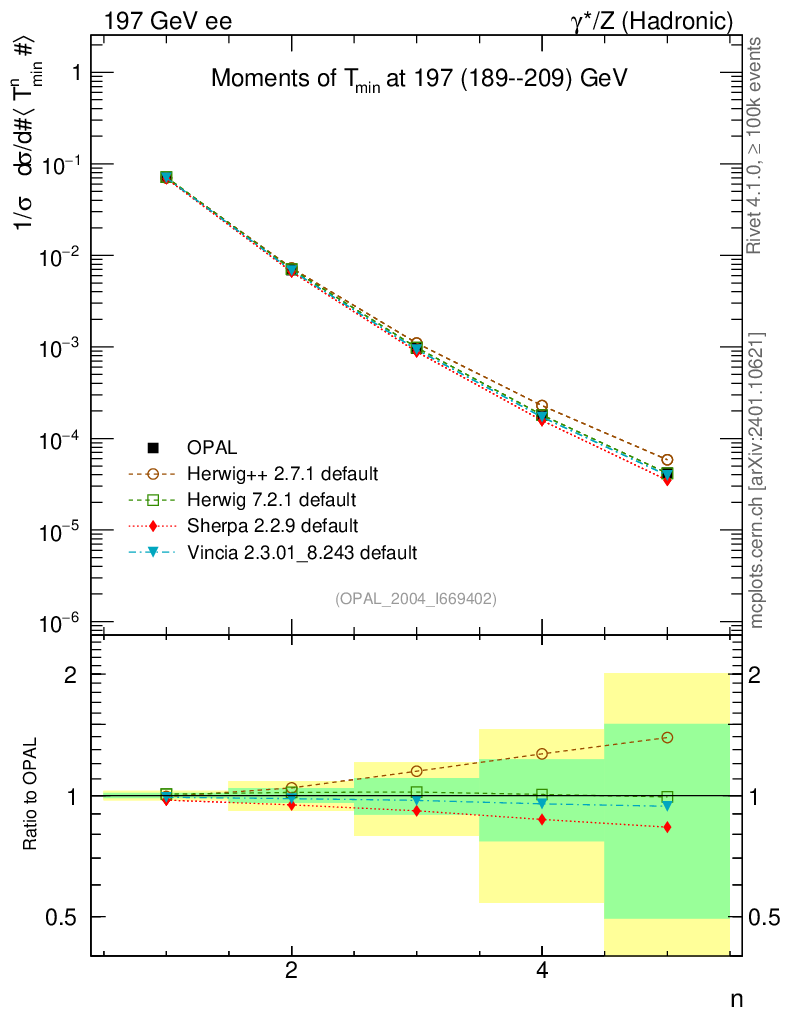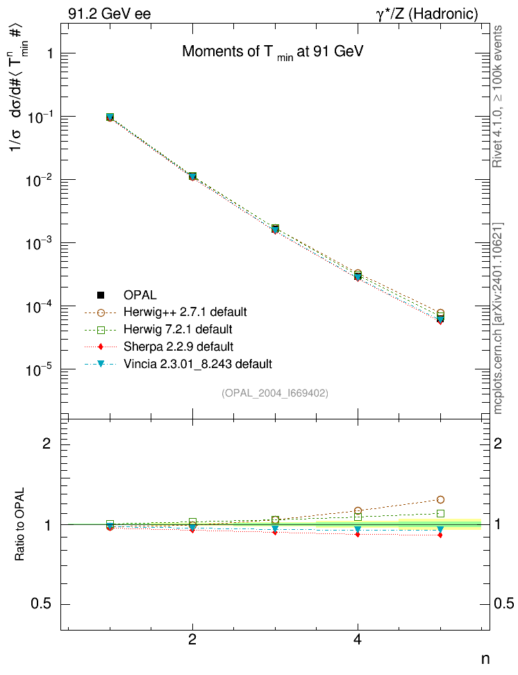 ee : γ*/Z (hadronic) : Event-Shape Moments : Moments of T Minor