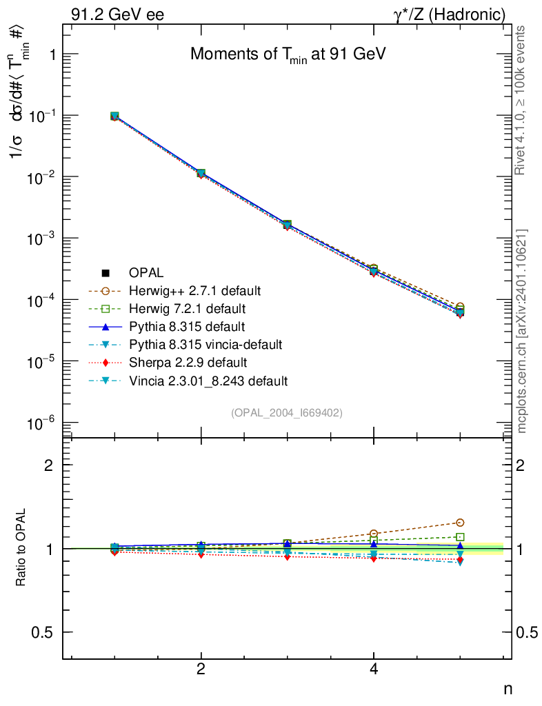 ee : γ*/Z (hadronic) : Event-Shape Moments : Moments of T Minor