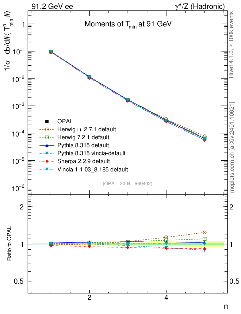 ee : γ*/Z (hadronic) : Event-Shape Moments : Moments of T Minor