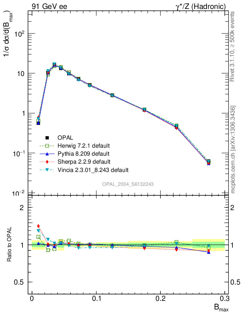 ee : γ*/Z (hadronic) : B(Max)