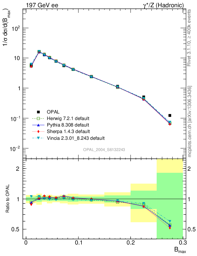 ee : γ*/Z (hadronic) : B(Max)