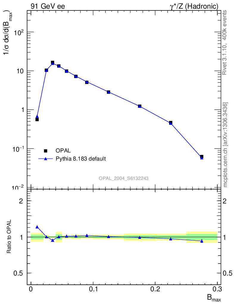 ee : γ*/Z (hadronic) : B(Max)