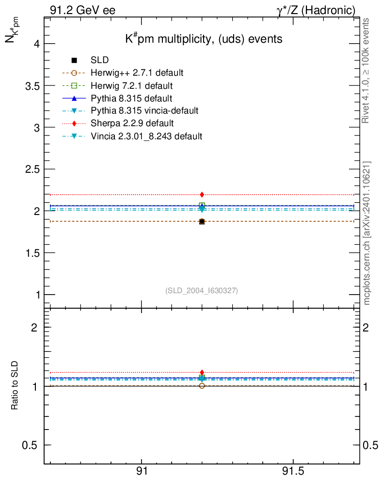 ee : γ*/Z (hadronic) : Identified Particles : K multiplicity