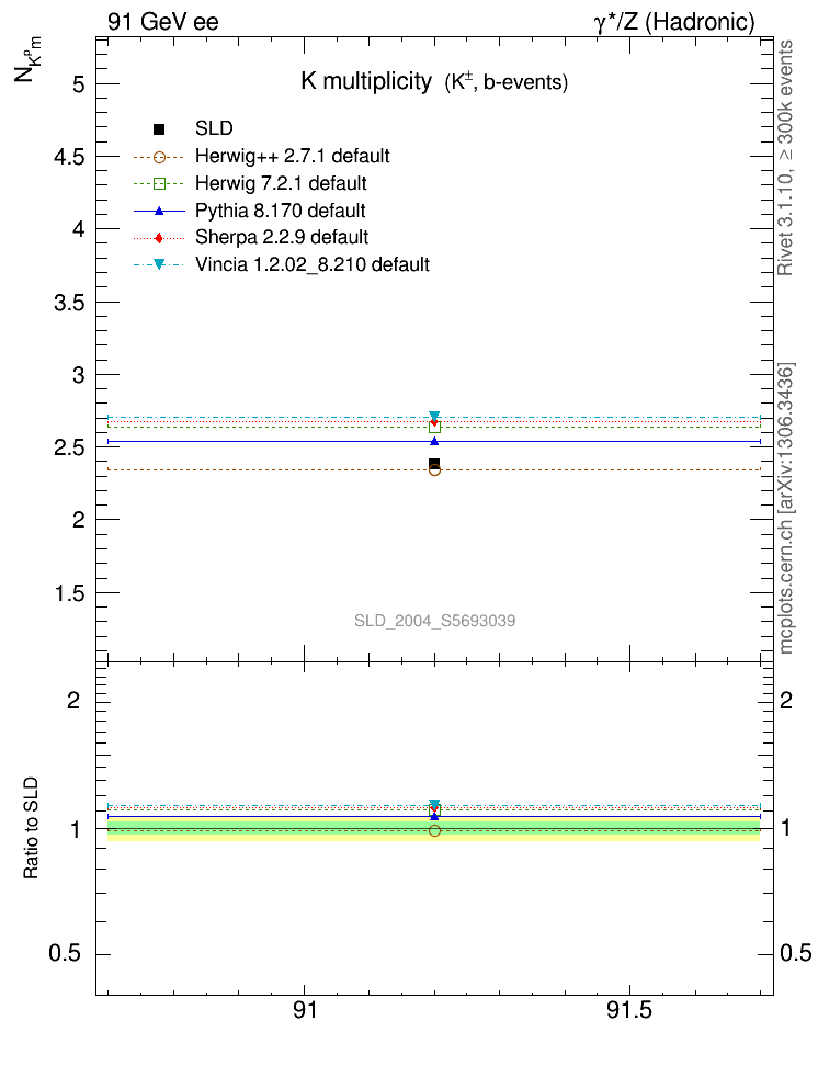 ee : γ*/Z (hadronic) : Identified Particles : K multiplicity