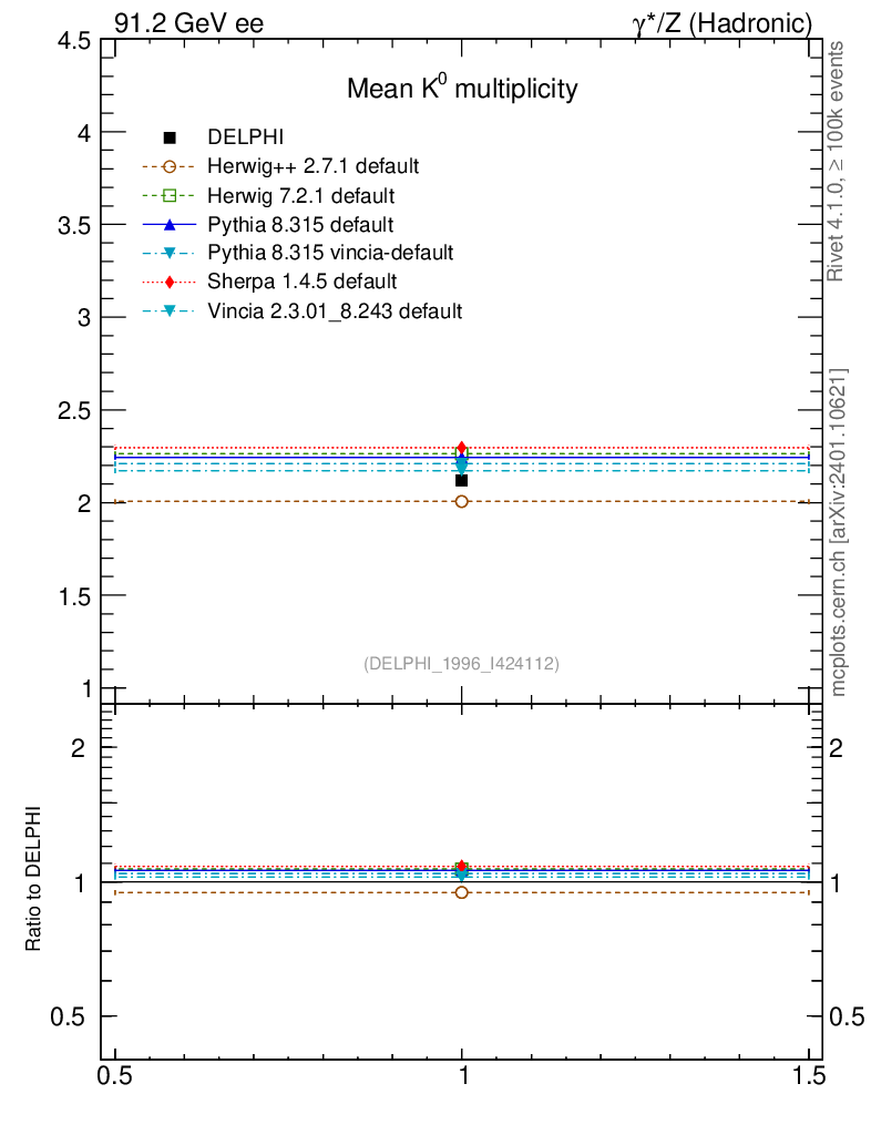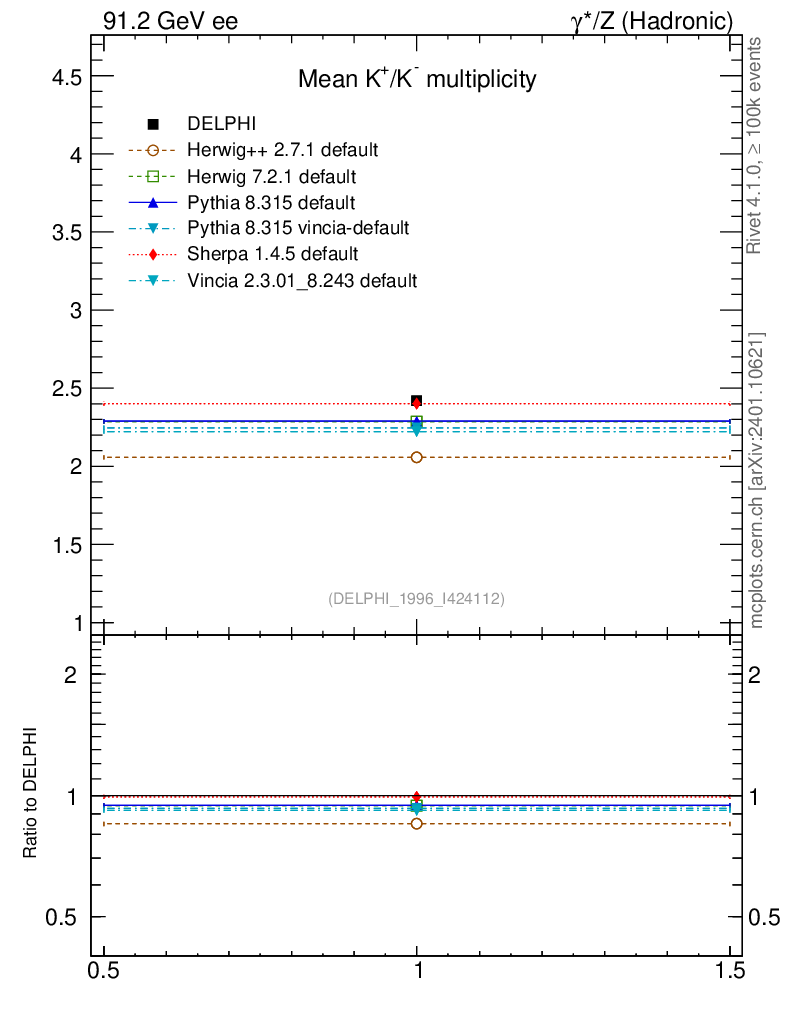 ee : γ*/Z (hadronic) : Identified Particles : K multiplicity