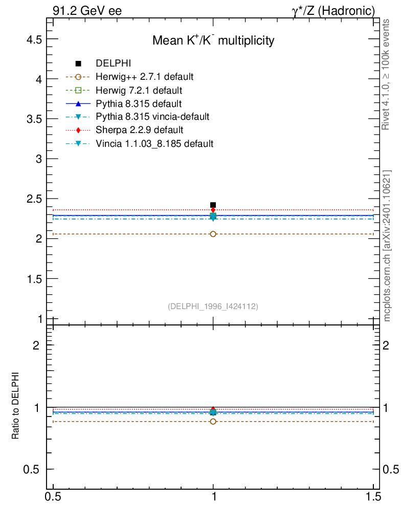 ee : γ*/Z (hadronic) : Identified Particles : K multiplicity