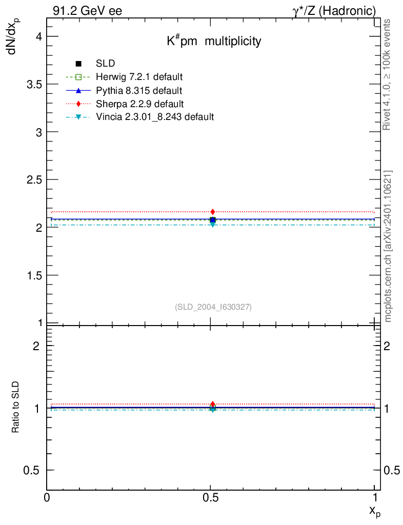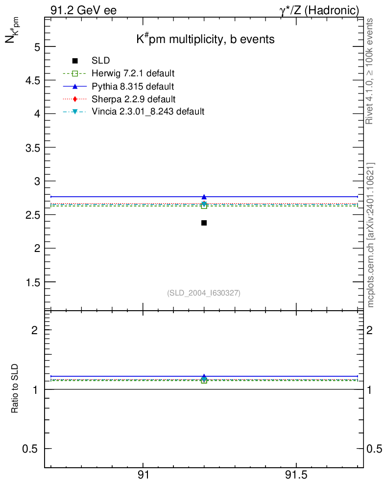 ee : γ*/Z (hadronic) : Identified Particles : K multiplicity
