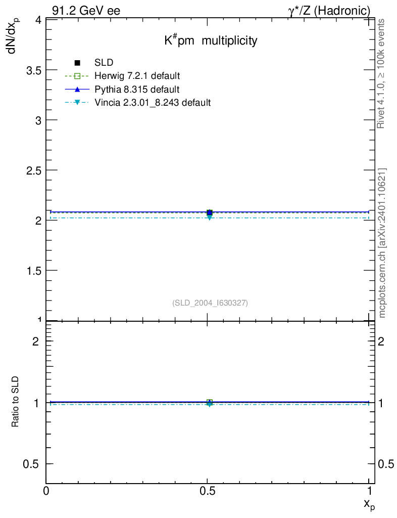 ee : γ*/Z (hadronic) : Identified Particles : K multiplicity