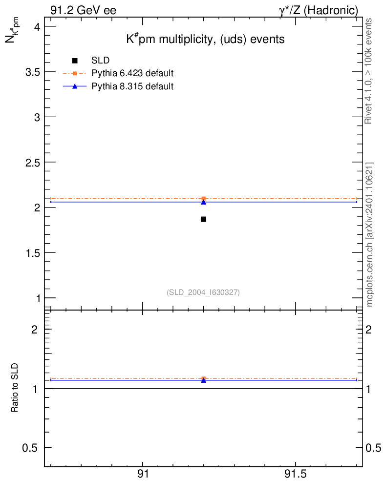 ee : γ*/Z (hadronic) : Identified Particles : K multiplicity