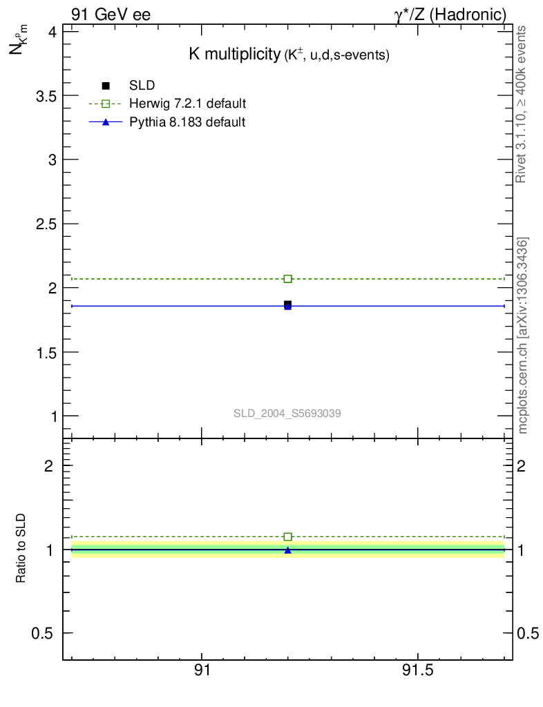ee : γ*/Z (hadronic) : Identified Particles : K multiplicity