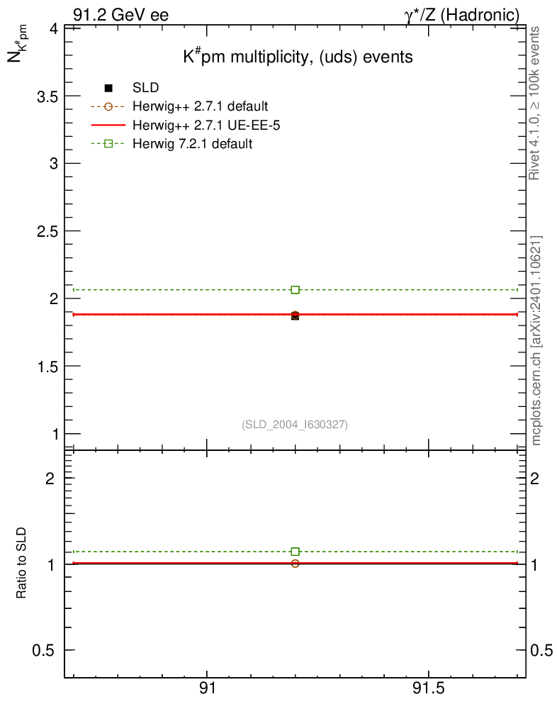 ee : γ*/Z (hadronic) : Identified Particles : K multiplicity
