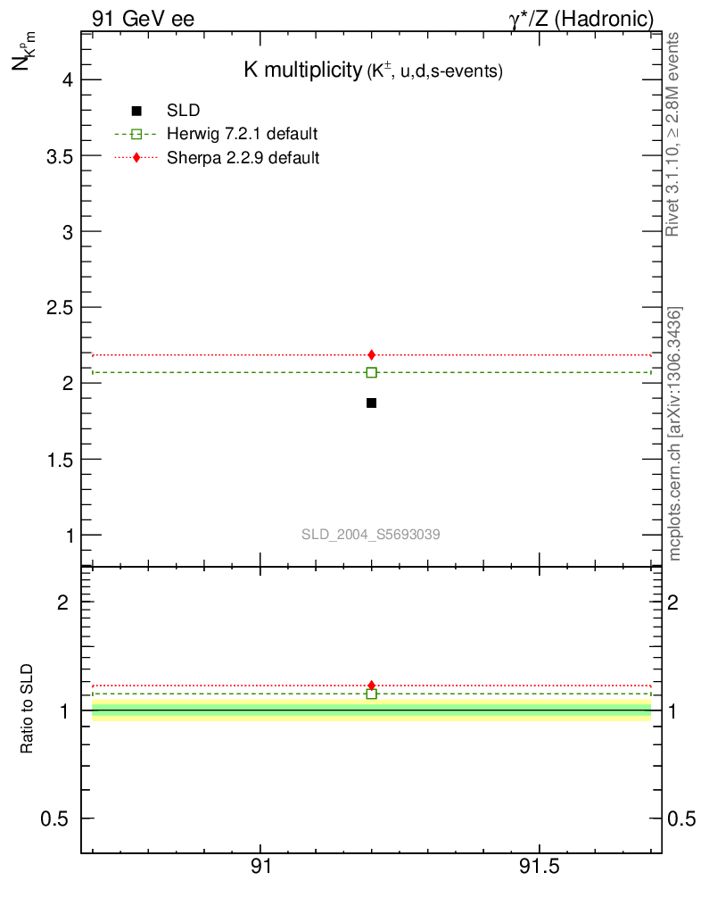 ee : γ*/Z (hadronic) : Identified Particles : K multiplicity