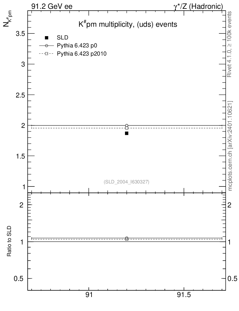 ee : γ*/Z (hadronic) : Identified Particles : K multiplicity