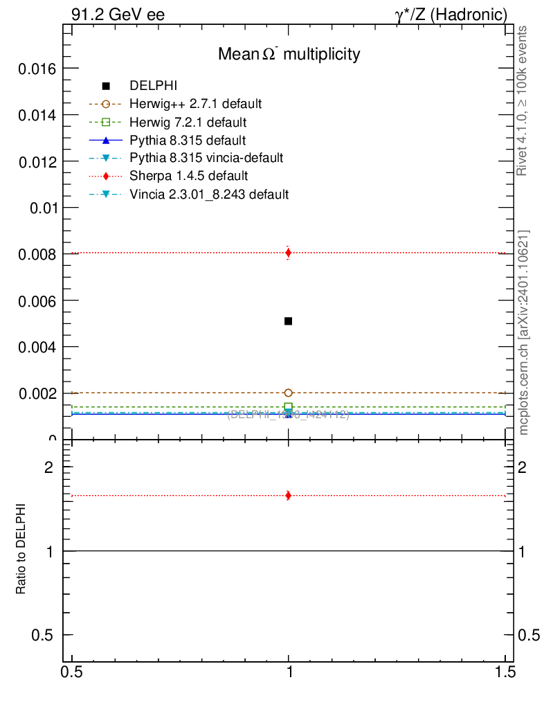ee : γ*/Z (hadronic) : Identified Particles : Ω multiplicity