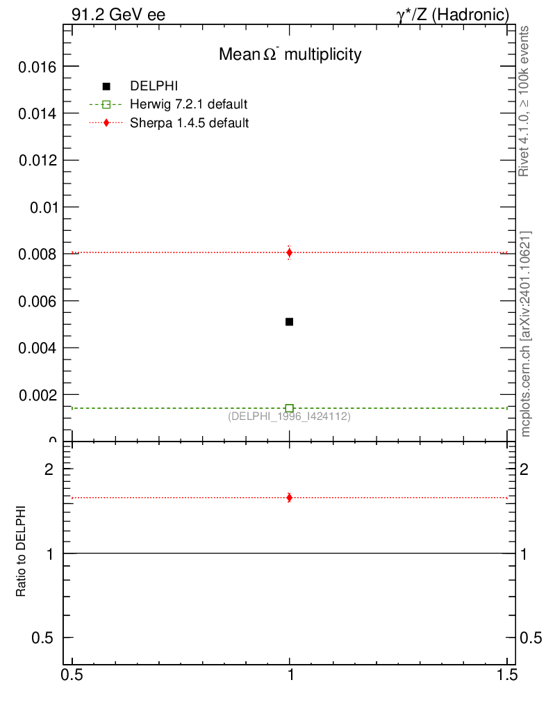 ee : γ*/Z (hadronic) : Identified Particles : Ω multiplicity