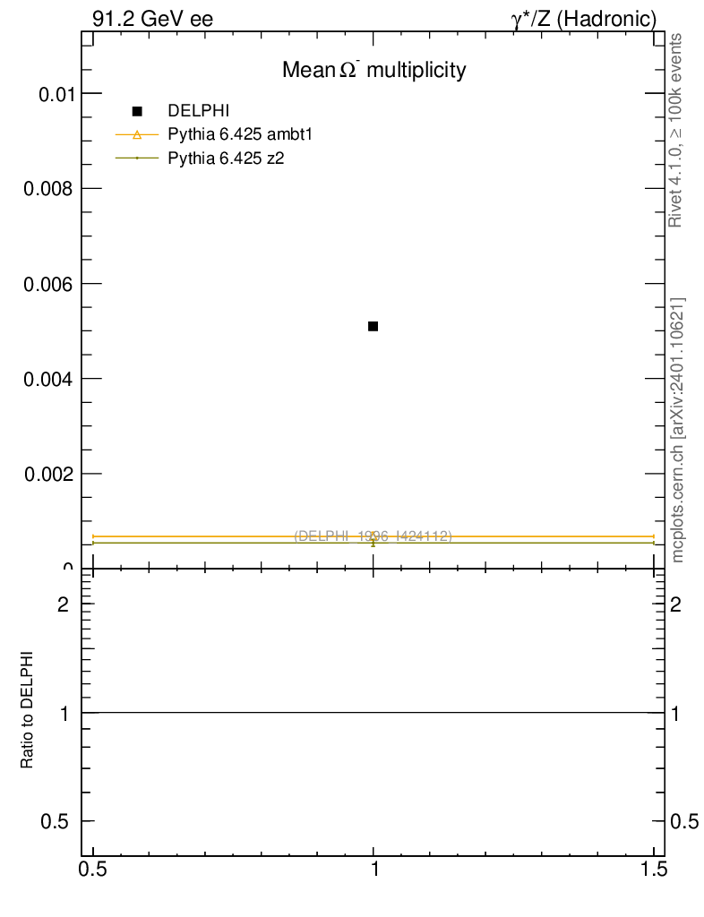 ee : γ*/Z (hadronic) : Identified Particles : Ω multiplicity