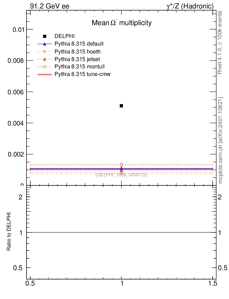 ee : γ*/Z (hadronic) : Identified Particles : Ω multiplicity