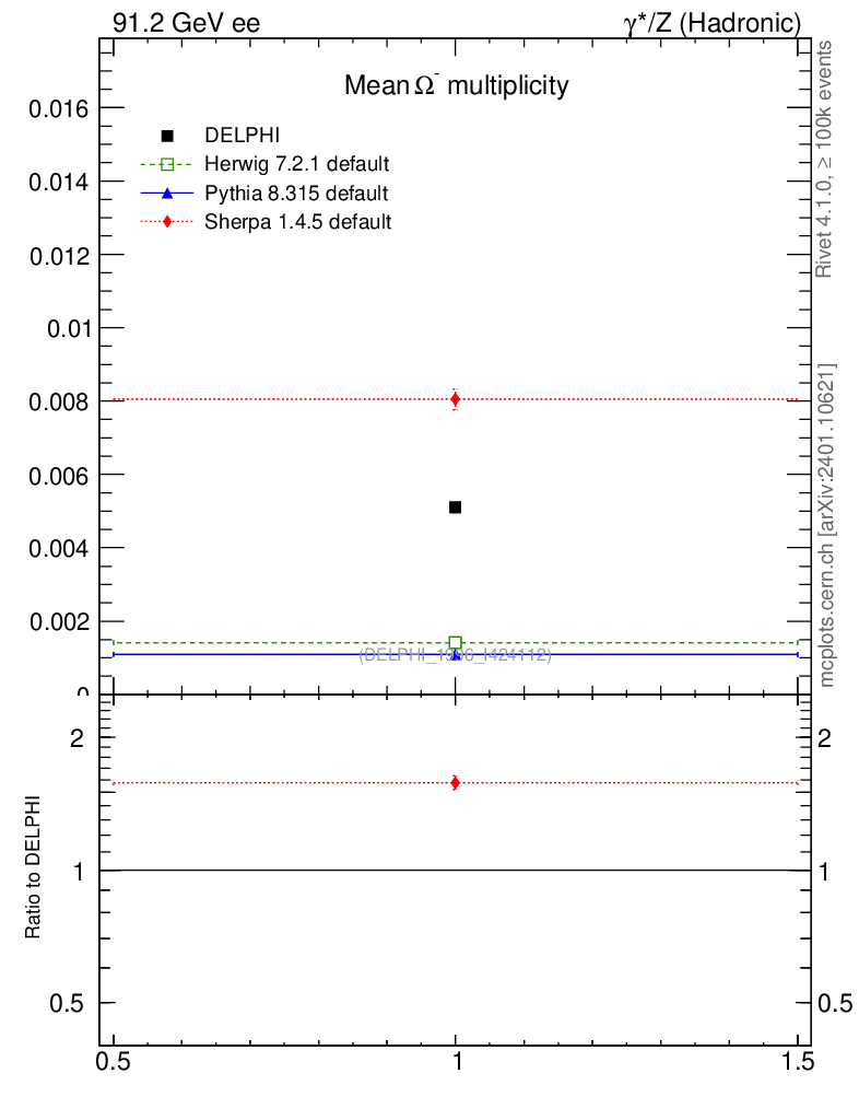 ee : γ*/Z (hadronic) : Identified Particles : Ω multiplicity