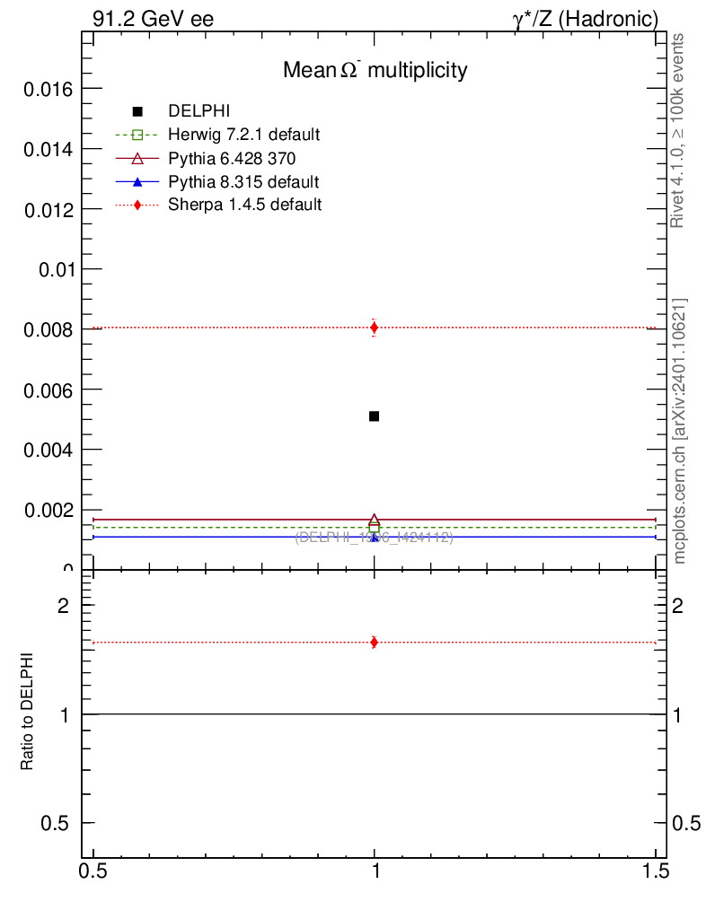 ee : γ*/Z (hadronic) : Identified Particles : Ω multiplicity