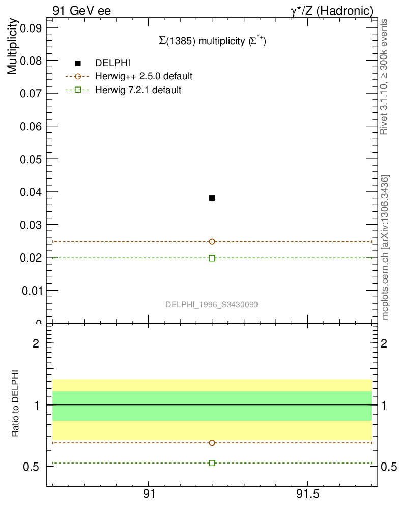 ee : γ*/Z (hadronic) : Identified Particles : Σ(1385) multiplicity
