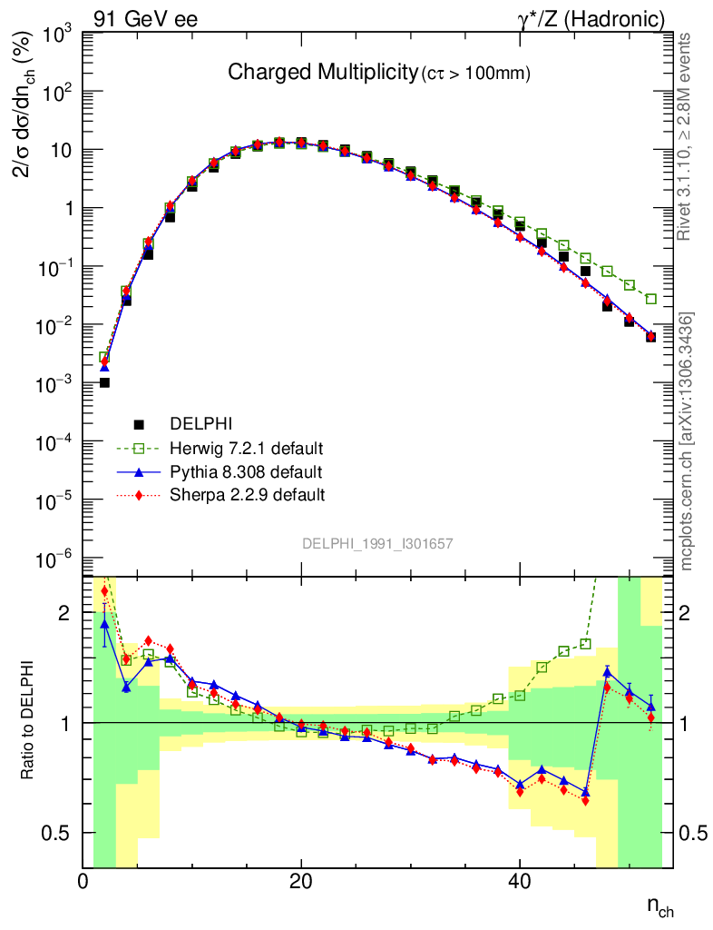ee : γ*/Z (hadronic) : Charged Particles : Multiplicity Distribution