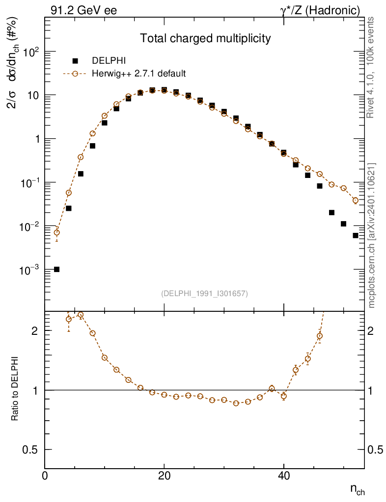 ee : γ*/Z (hadronic) : Charged Particles : Multiplicity Distribution