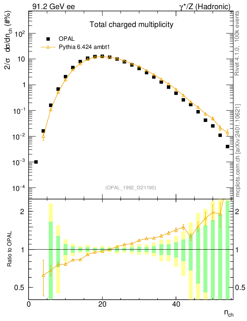 ee : γ*/Z (hadronic) : Charged Particles : Multiplicity Distribution