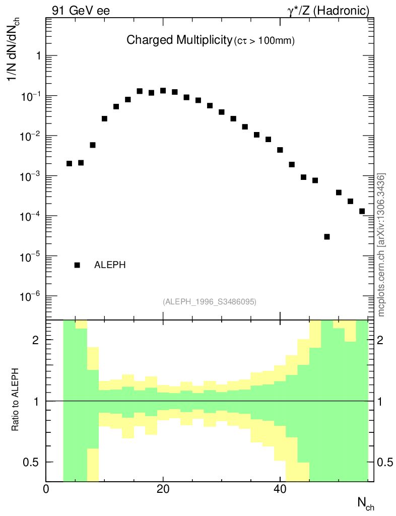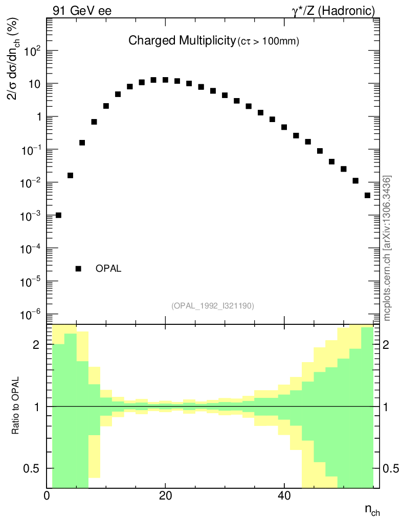 ee : γ*/Z (hadronic) : Charged Particles : Multiplicity Distribution