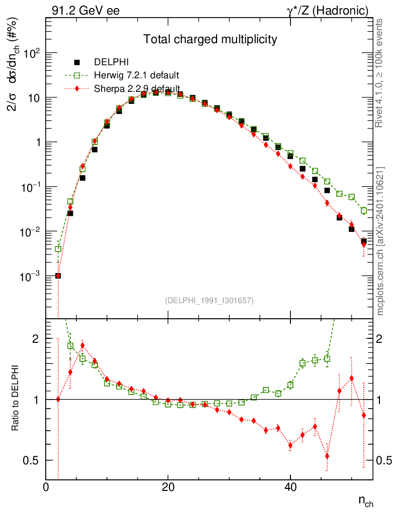 ee : γ*/Z (hadronic) : Charged Particles : Multiplicity Distribution