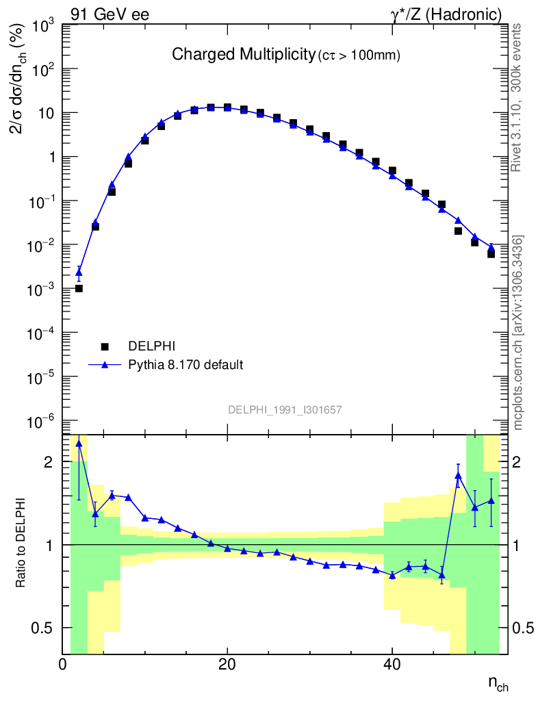 ee : γ*/Z (hadronic) : Charged Particles : Multiplicity Distribution