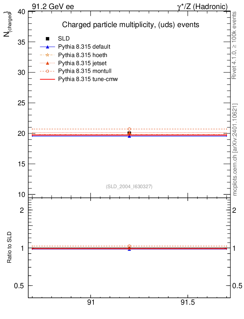 ee : γ*/Z (hadronic) : Charged Particles : <N