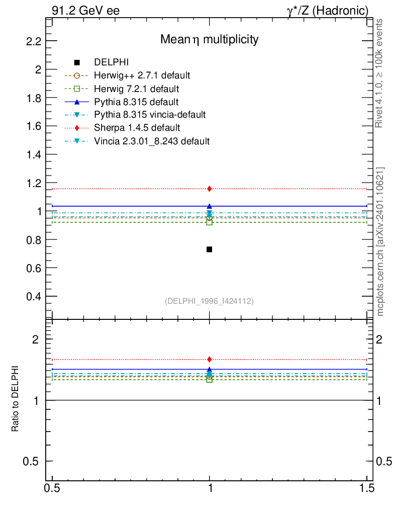 ee : γ*/Z (hadronic) : Identified Particles : η multiplicity