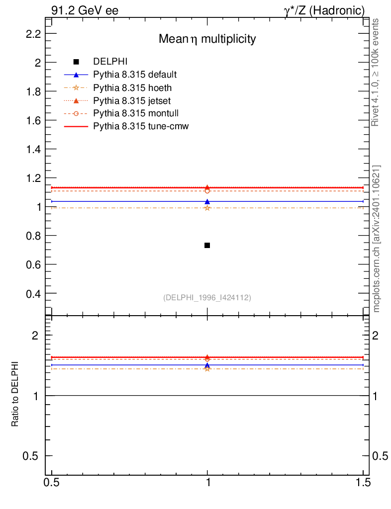 ee : γ*/Z (hadronic) : Identified Particles : η multiplicity