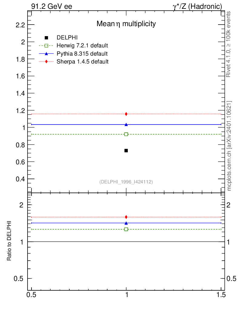 ee : γ*/Z (hadronic) : Identified Particles : η multiplicity