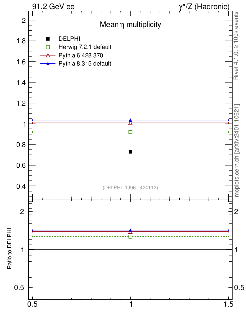 ee : γ*/Z (hadronic) : Identified Particles : η multiplicity