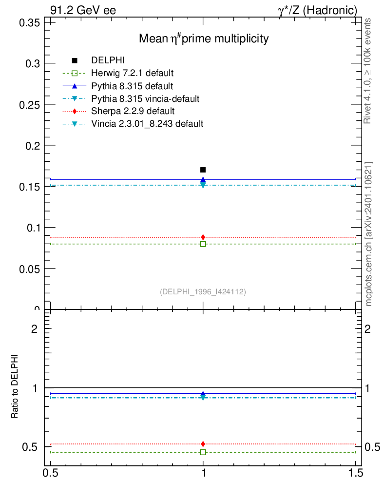 ee : γ*/Z (hadronic) : Identified Particles : η' multiplicity
