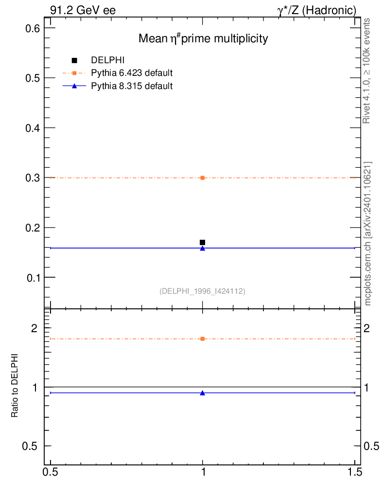 ee : γ*/Z (hadronic) : Identified Particles : η' multiplicity