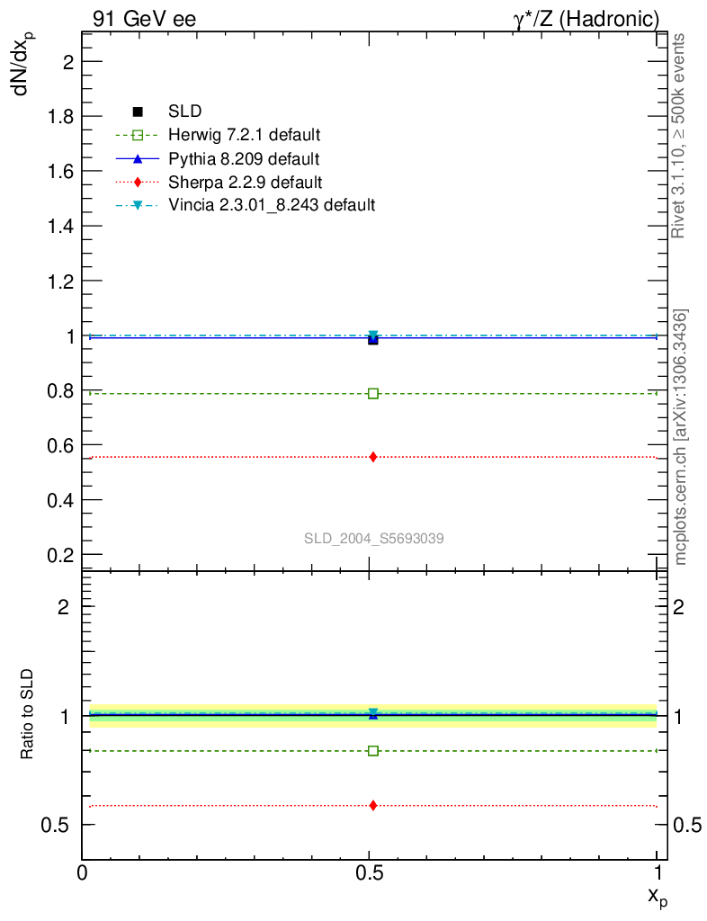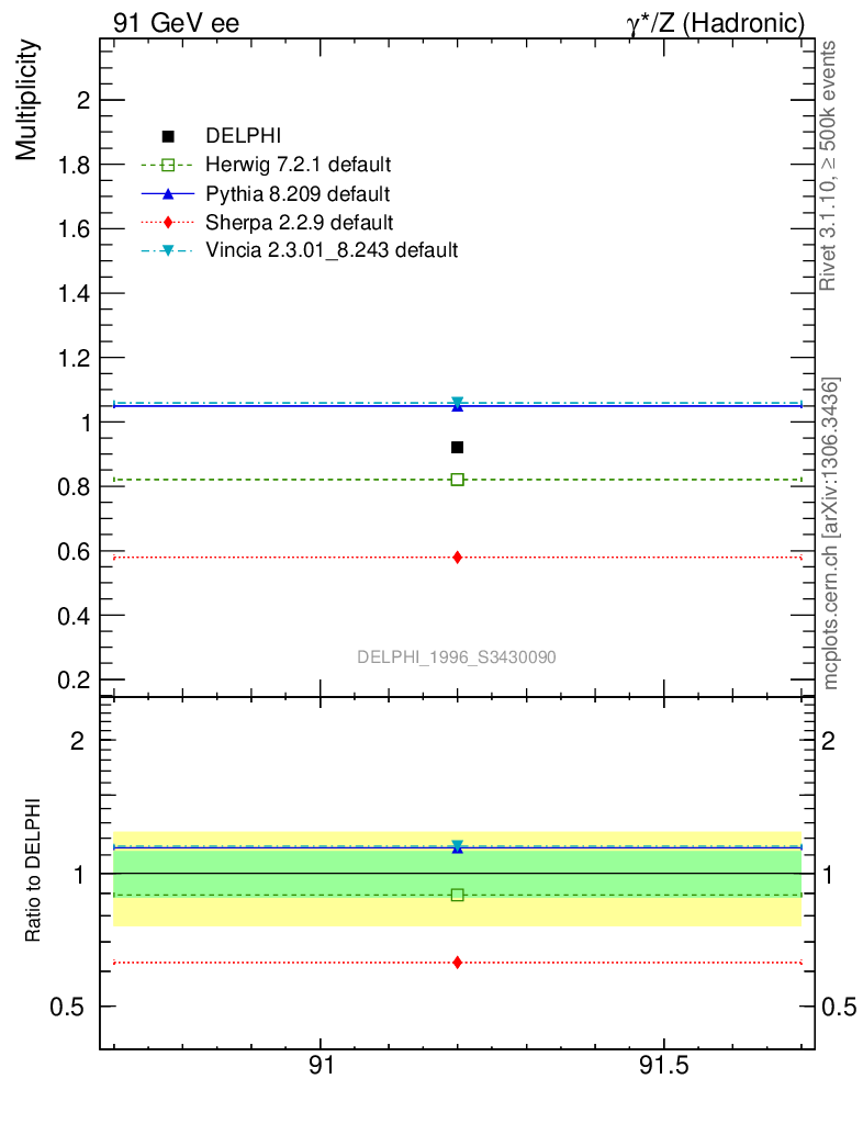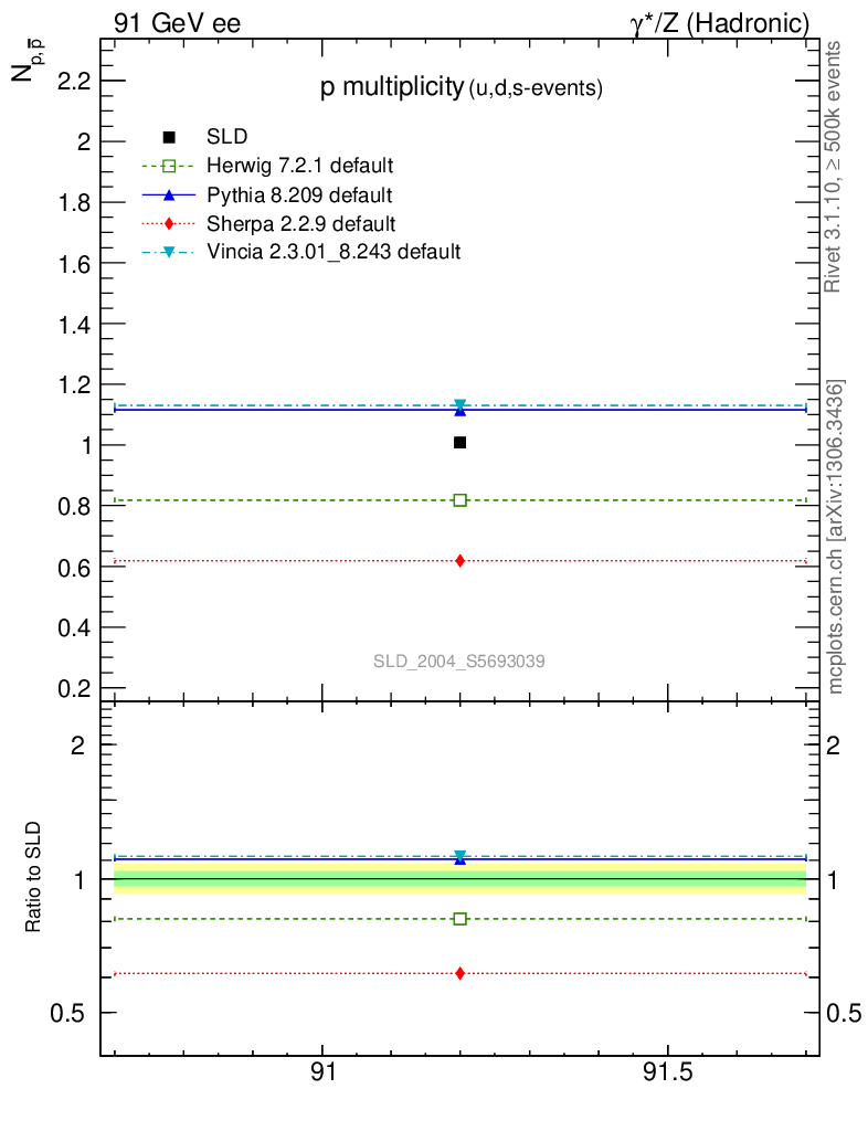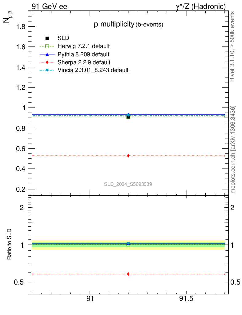 ee : γ*/Z (hadronic) : Identified Particles : p multiplicity