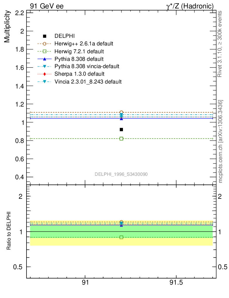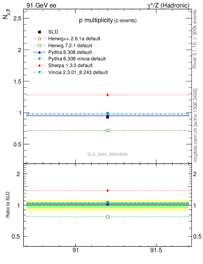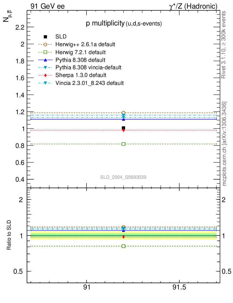 ee : γ*/Z (hadronic) : Identified Particles : p multiplicity